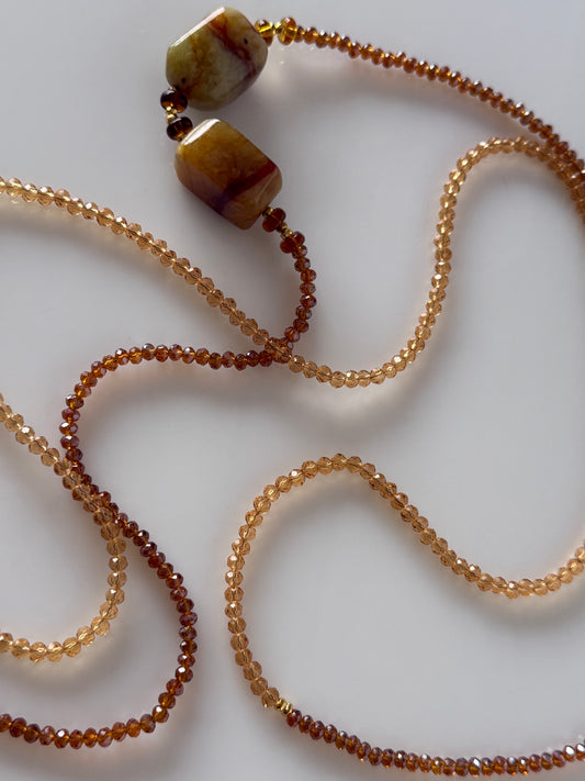 Collar en Cristales color Miel y Piedras Naturales